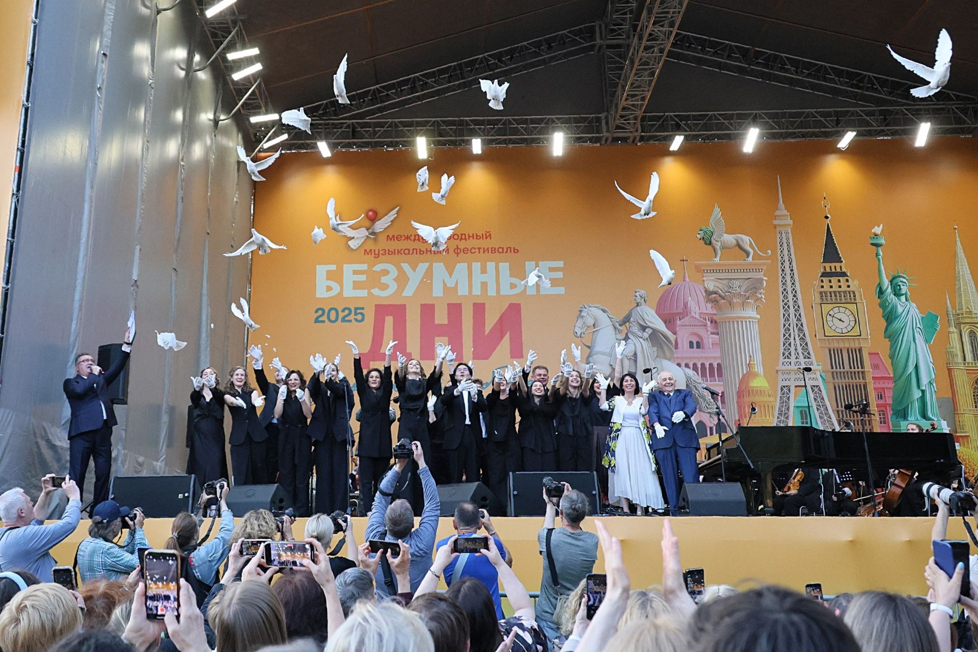 Прежде чем Сад Вайнера наполнился музыкой, в небо из рук музыкантов взмыли белоснежные голуби — символы чистоты, вдохновения и добра. Они разнесли весть о начале Десятого музыкального фестиваля «Безумные дни» по всей стране.