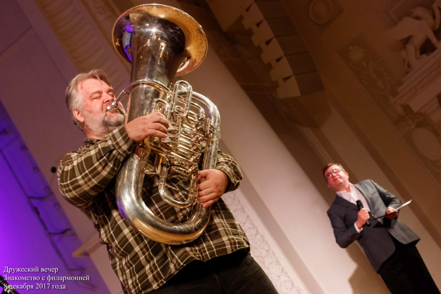 Гости филармонии узнали, как стал дирижером флейтист Алексей Доркин, познакомились с единственным тубистом Уральского филармонического оркестра Олегом Соловьем, послушали рассказы органиста Тараса Багинца и, конечно же, услышали величественное звучание органа и всю мощь симфонического оркестра.