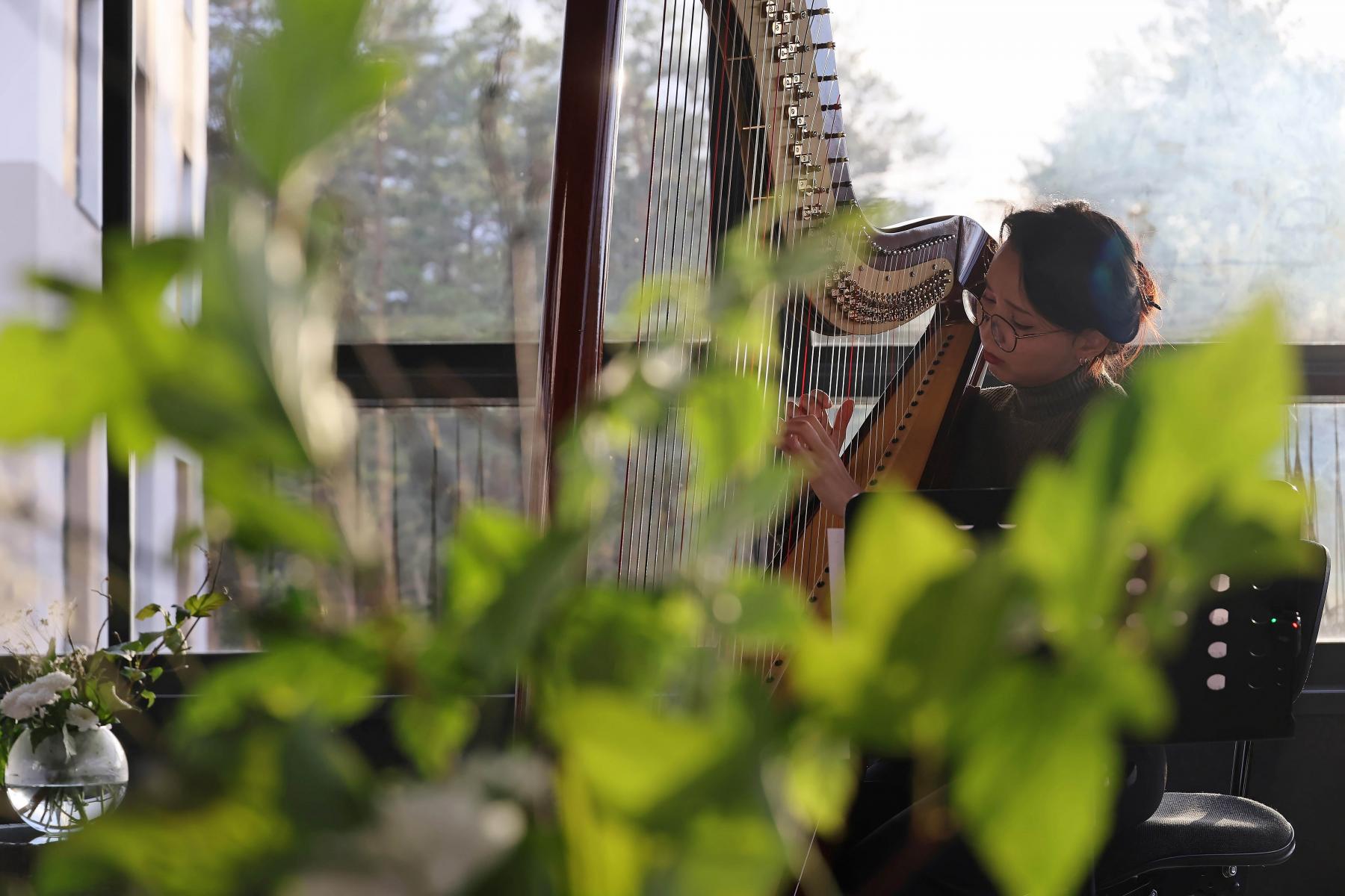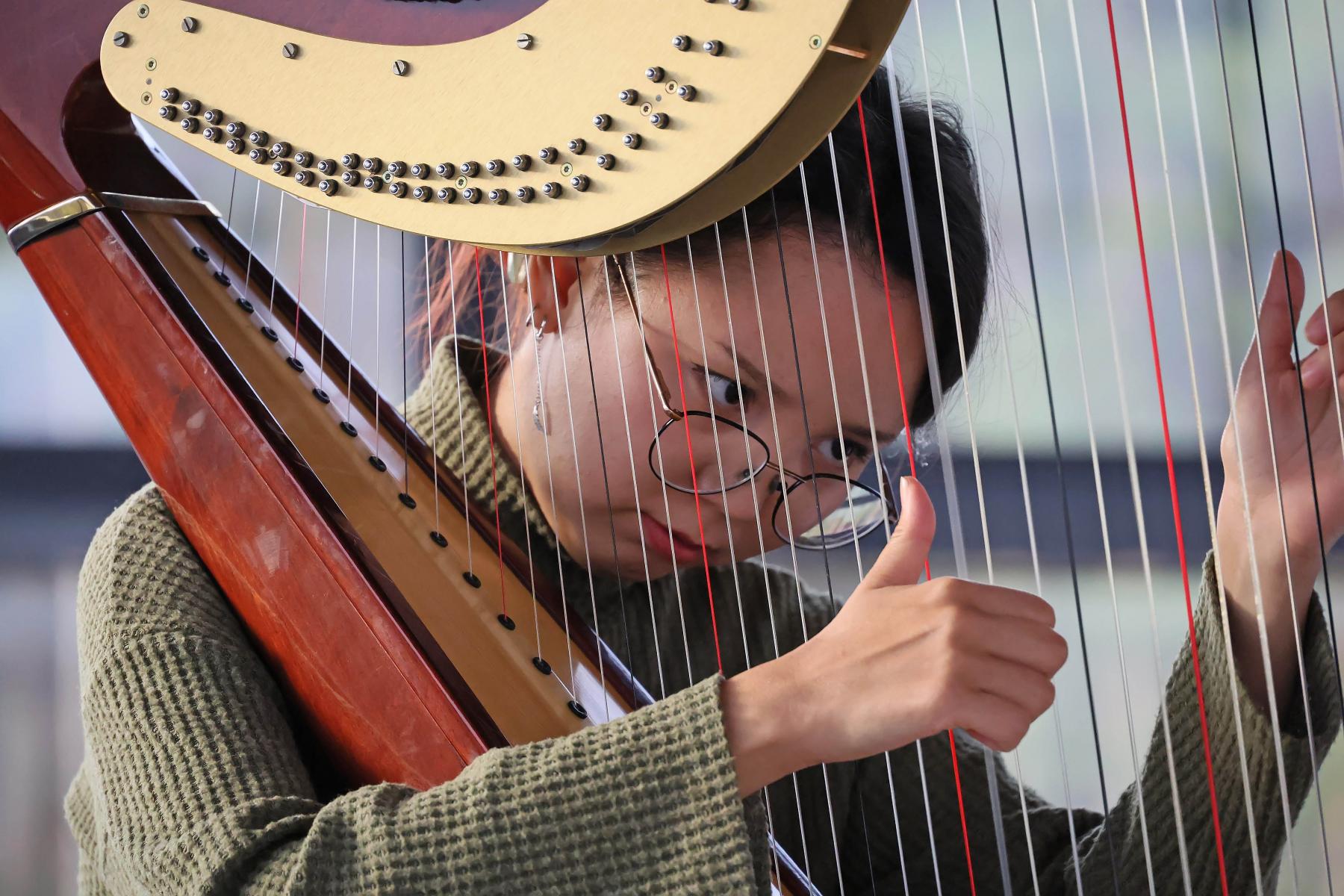 Такой встречей стало выступление арфистки Уральского молодёжного оркестра Кристины Соловьевой. Недавно она прошла конкурс в коллектив, и концерт в Центре — её первый публичный выход. Кристина исполнила «Осеннюю песнь» Петра Ильича Чайковского, а в кульминационный момент зал озарило вышедшее из-за туч солнце.