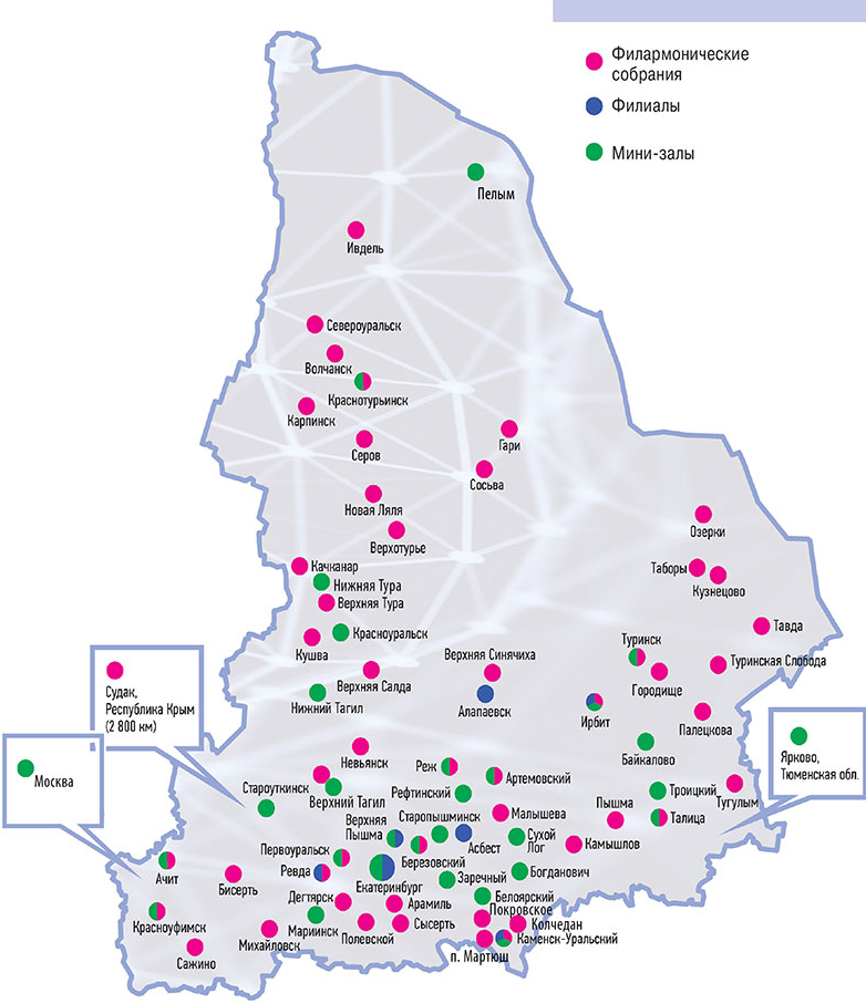 Филармонические собрания – это сообщества жителей Свердловской области – слушателей Виртуального концертного зала. Стремление быть причастными к крупным культурным событиям и желание общаться с близкими по духу людьми, приводит их на просмотры трансляций концертов классической музыки, организованных на базе муниципальных библиотек в городах, поселках и деревнях Свердловской области.